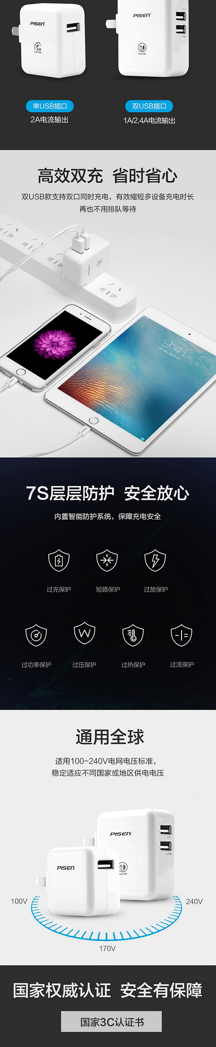 品胜 TS-C070 iPad 2.4A...