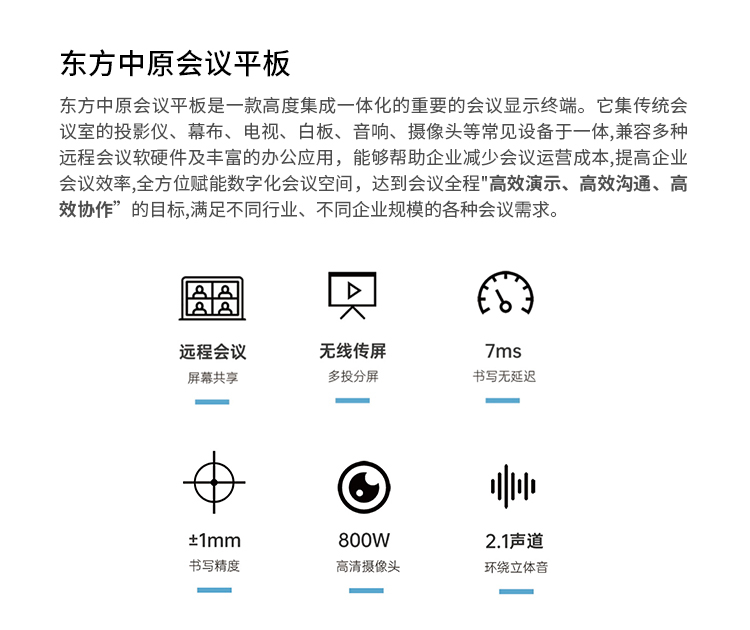 东方中原 DS-I65PA 65英寸触控一体机 视频会议电子白板 含I7电脑移动支架无线同屏器(单位:套)
