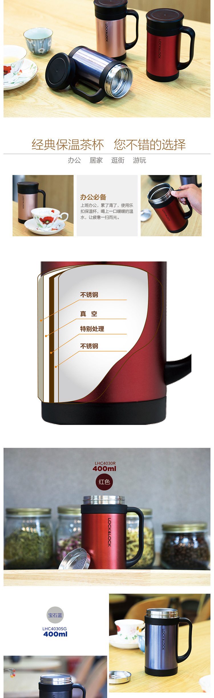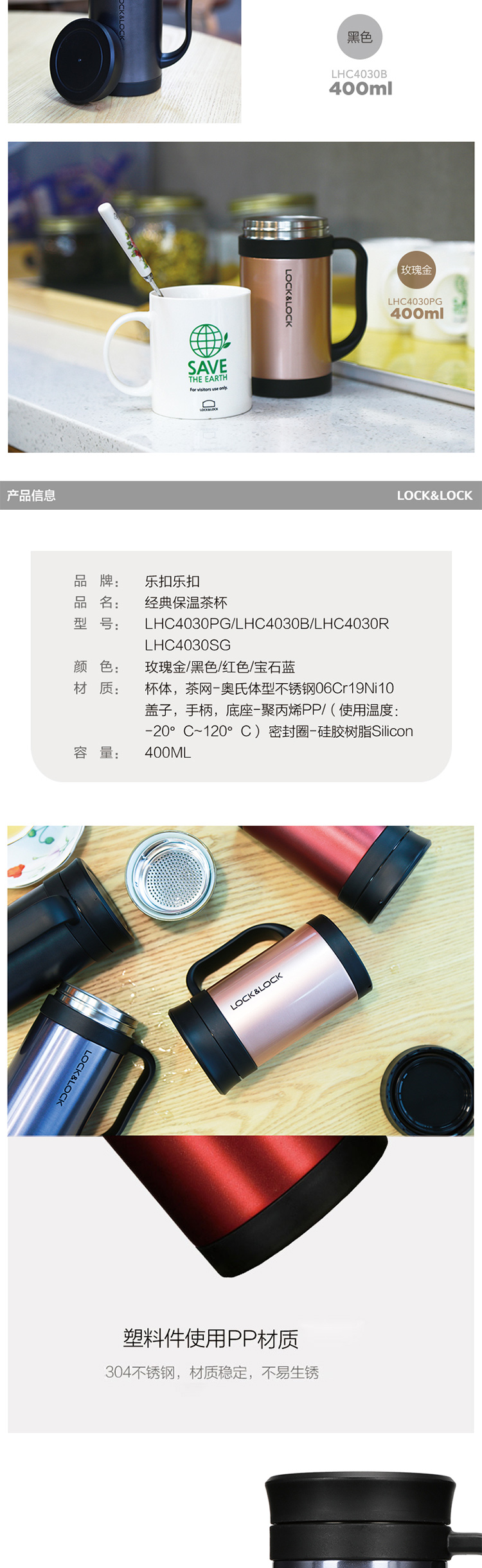 乐扣乐扣 LHC4030 400ML 304不锈钢带茶网保温杯 黑色(单位:个)