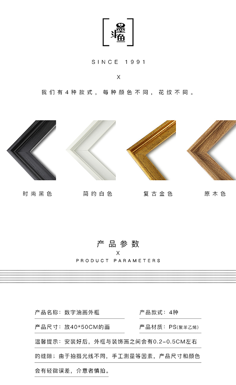 墨斗鱼 3544 数字油画外框 40*50cm 原木色 (单位:件)