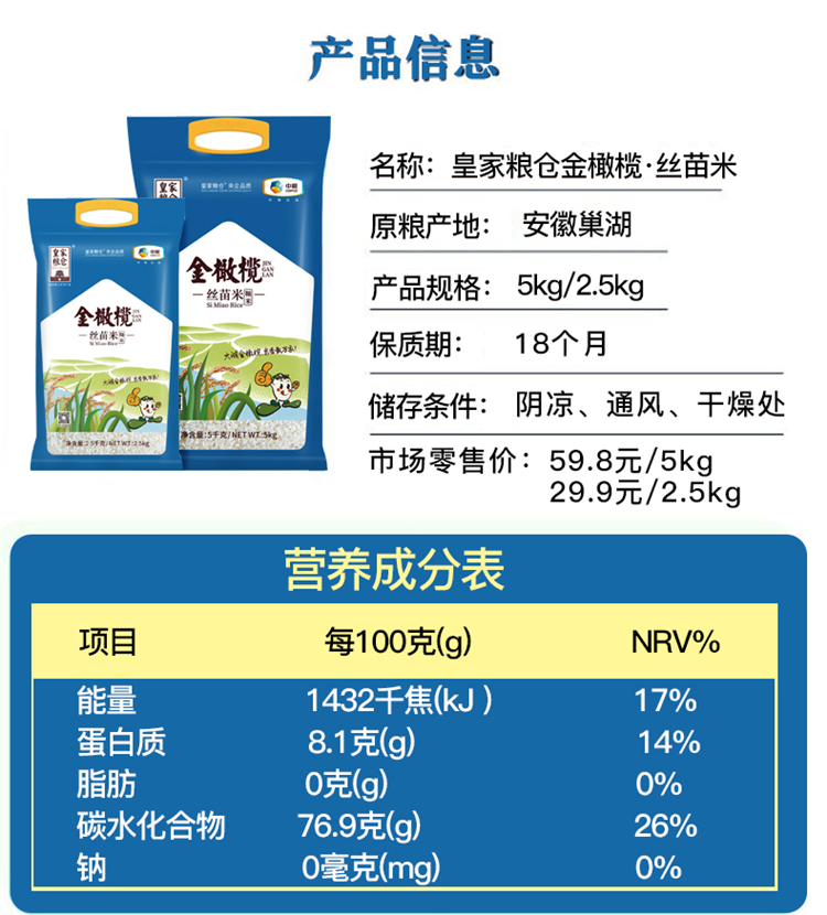 中粮 2.5kg 皇家粮仓金橄榄丝苗米(单位:袋)