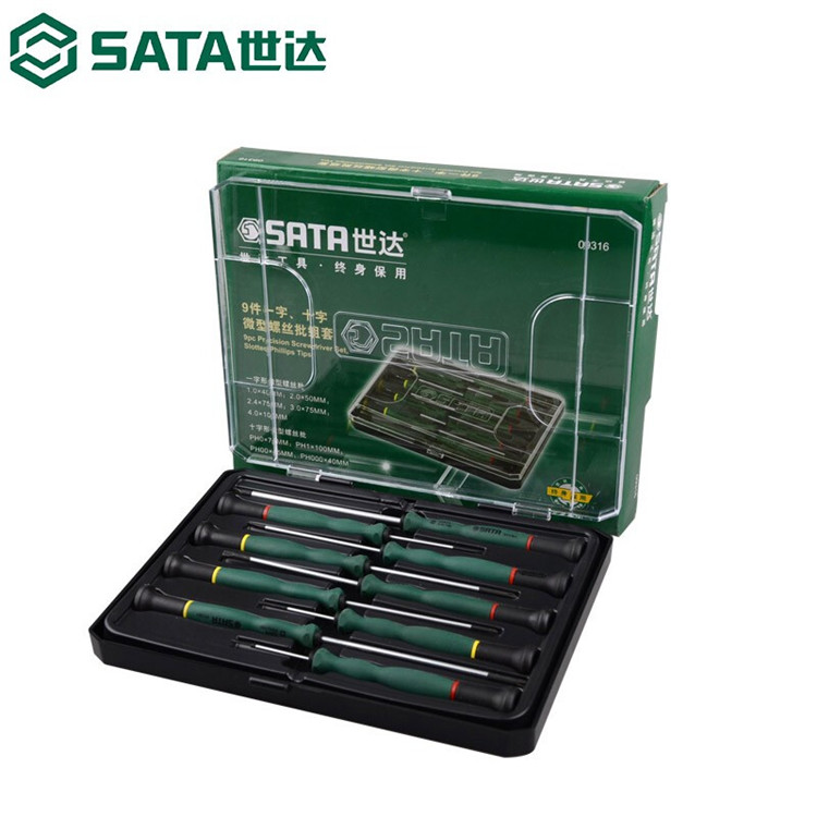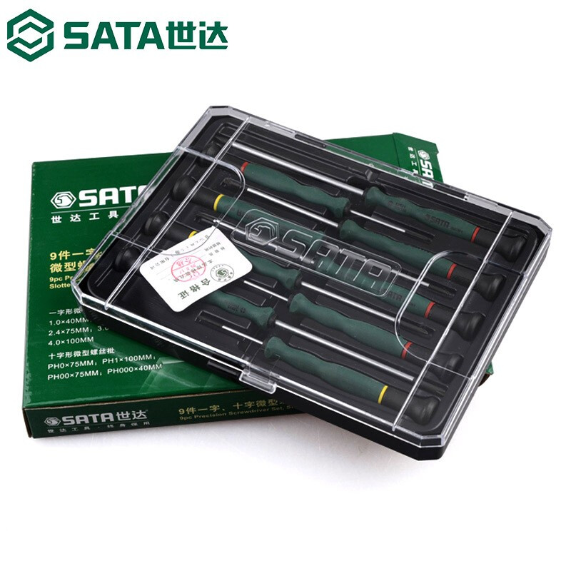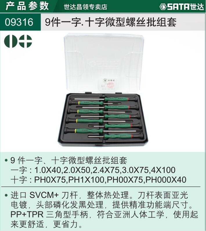 世达(SATA) S09316 9件一字、十字微型螺丝批组套 绿 (单位:台)