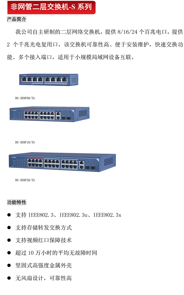 海康威视 DS-3E0F26/TA 非网管百兆交换机(单位:台)