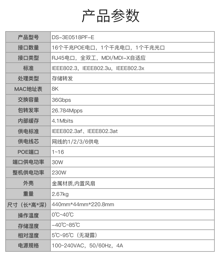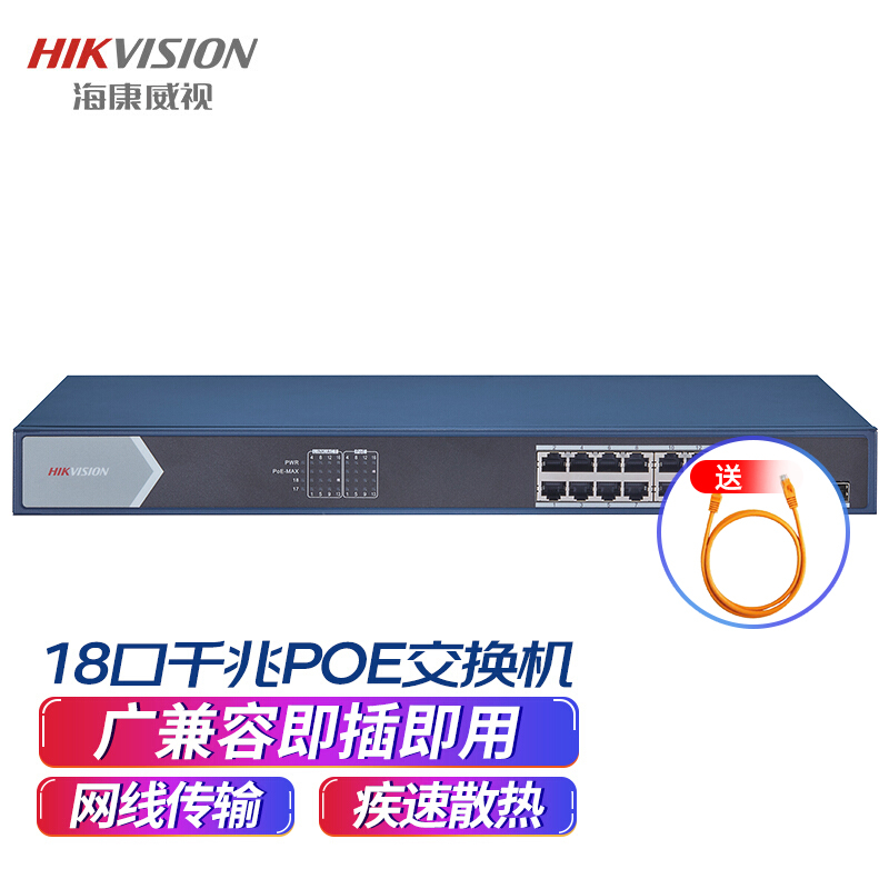 海康威视 DS-3E0518PF-E 18口全千兆POE交换机 黑色(单位:台)