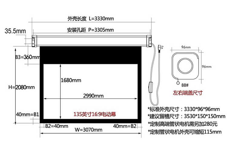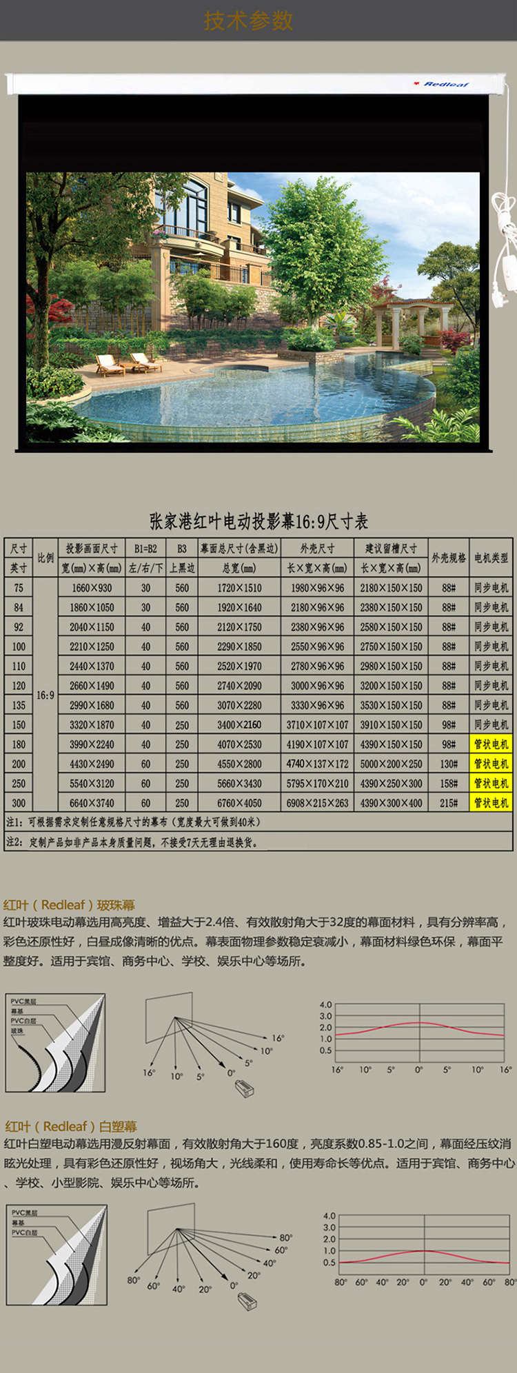 红叶 135寸 16:9电动玻珠...