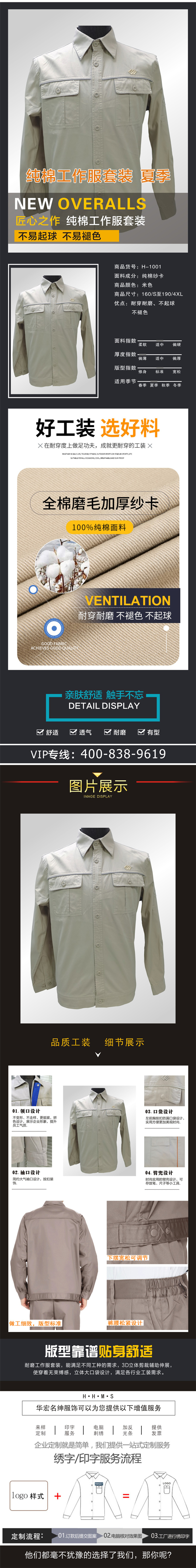华宏名绅 全棉 夏季长袖工作服 ...