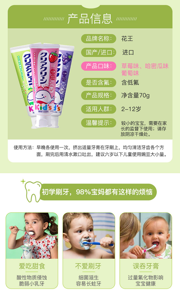 花王(KAO)儿童牙膏 草莓味 70g ...
