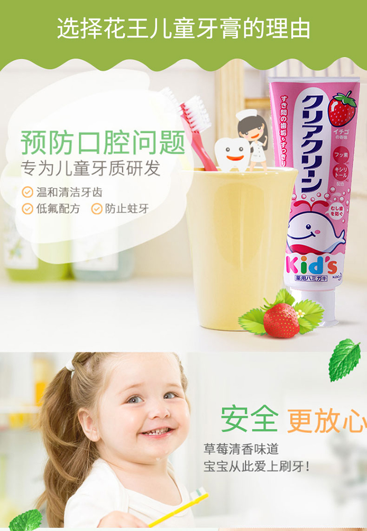 花王(KAO)儿童牙膏 草莓味 70g (单位:支)