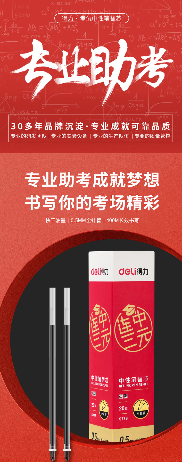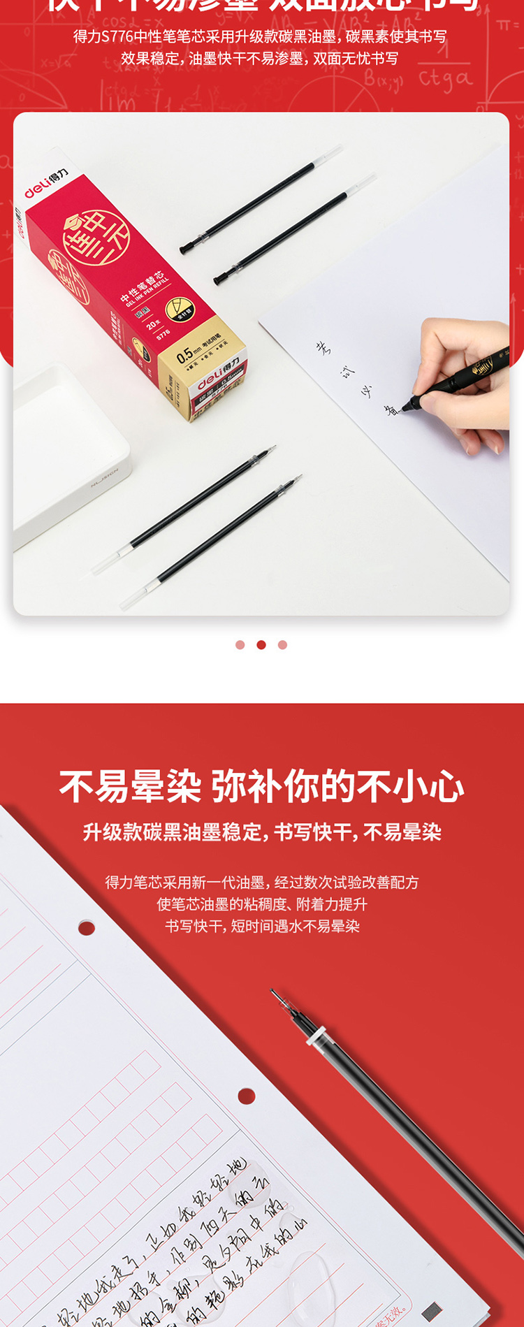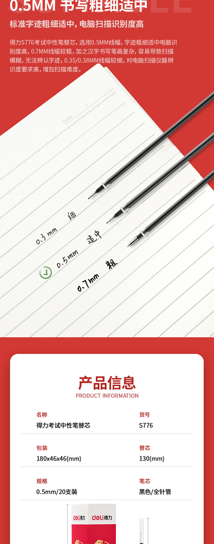 得力 S776 考试中性笔替芯全针管 0...
