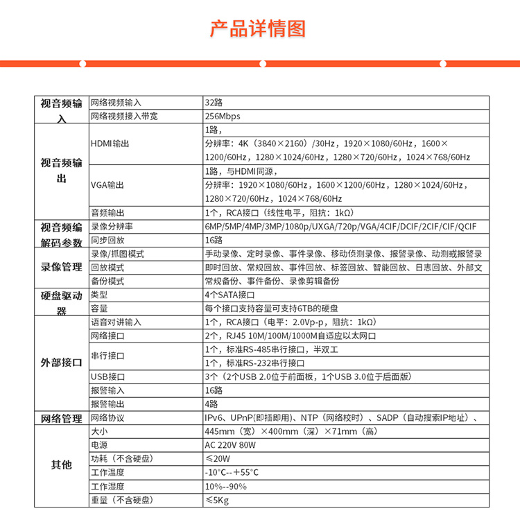 海康威视 DS-7932N-K4 同源高清视频输出、智能高清回放 硬盘录像机 黑色 (单位:台)